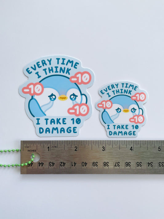 "Everytime I think, I take 10 Damage" Waterproof Sticker